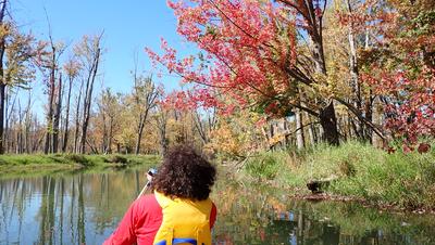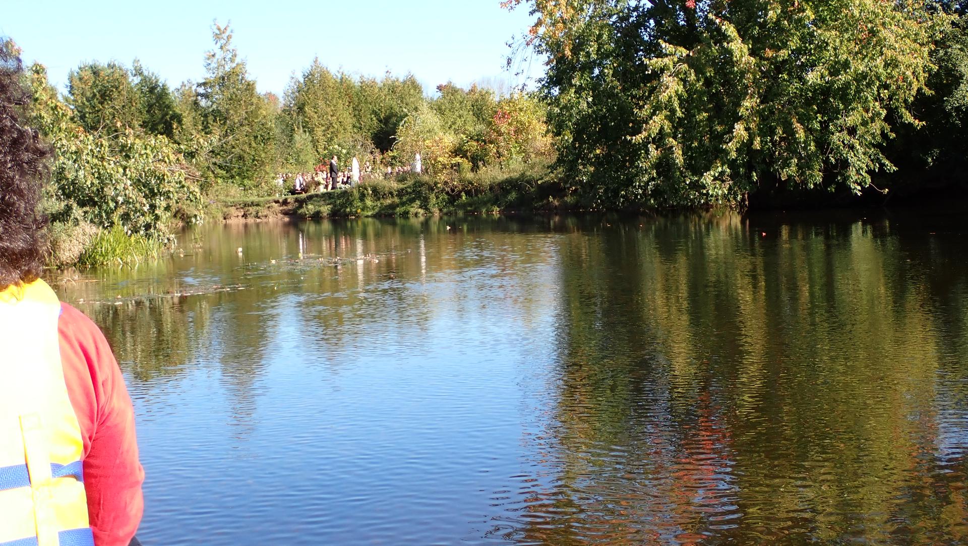 Truth is, with two people, canoes are more fun than kayaks. They are bigger and there's no issue with the paddles hitting each other if they are not in sync. So we had fun! Plus the day was lovely, and the fall colours, amazing. A funny moment was when we passed uninvited by a river-side wedding at precisely the "groom may now kiss the bride" moment.