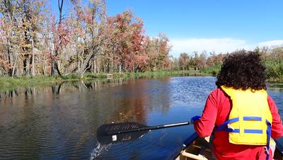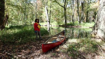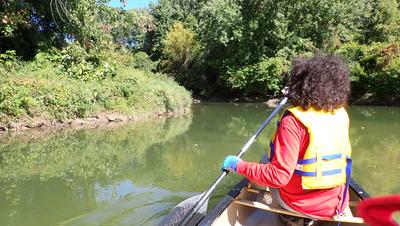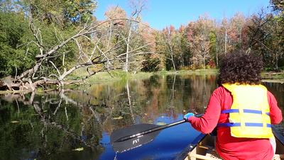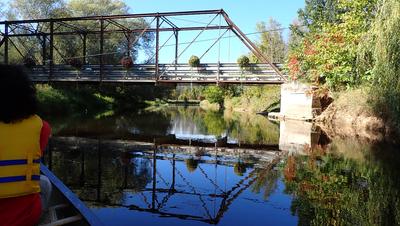 The day started wrong - we were going to use my 2-person inflatable kayak, which is not a lot better than a toy. Very quickly it turned out to have a flat in one of its compartments, and just a few hundred meters in, we had to turn back. Fortunately, just before, when I was leaving my bike at the ending point, I saw that there was a nice canoe/kayak rental store right there. So we drove there, rented a canoe (over $150!), and they gave us a ride back to the starting point.