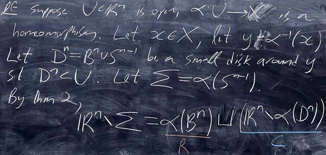 260310-172811: March 10 H26-27: Pathologies and theorems in $R^n$ and $S^n$, invariance of domain (9).